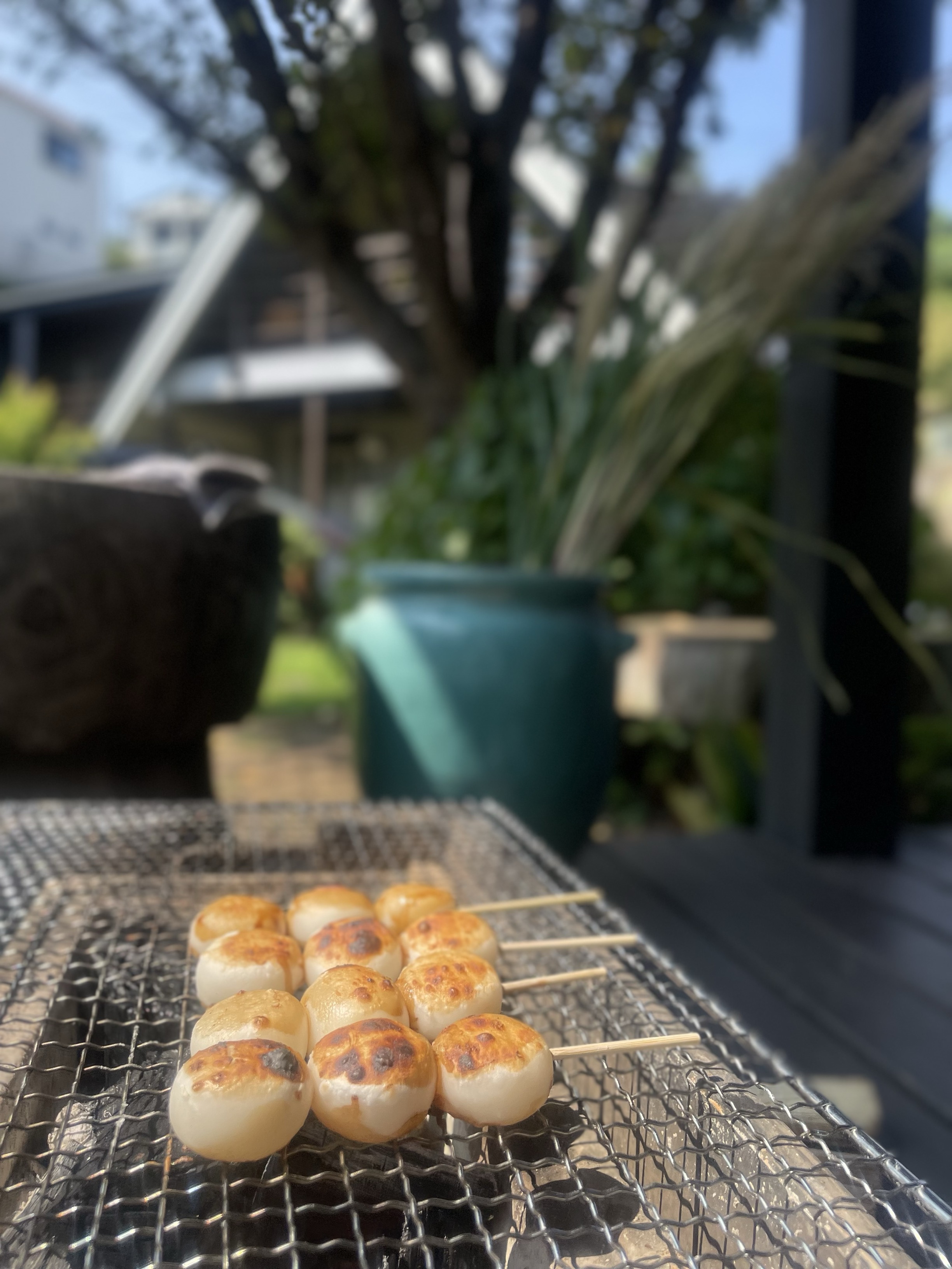 軒下で秋風を感じながらお月見団子焼き。香ばしく甘い団子を片手にゆっくりお過ごしください。