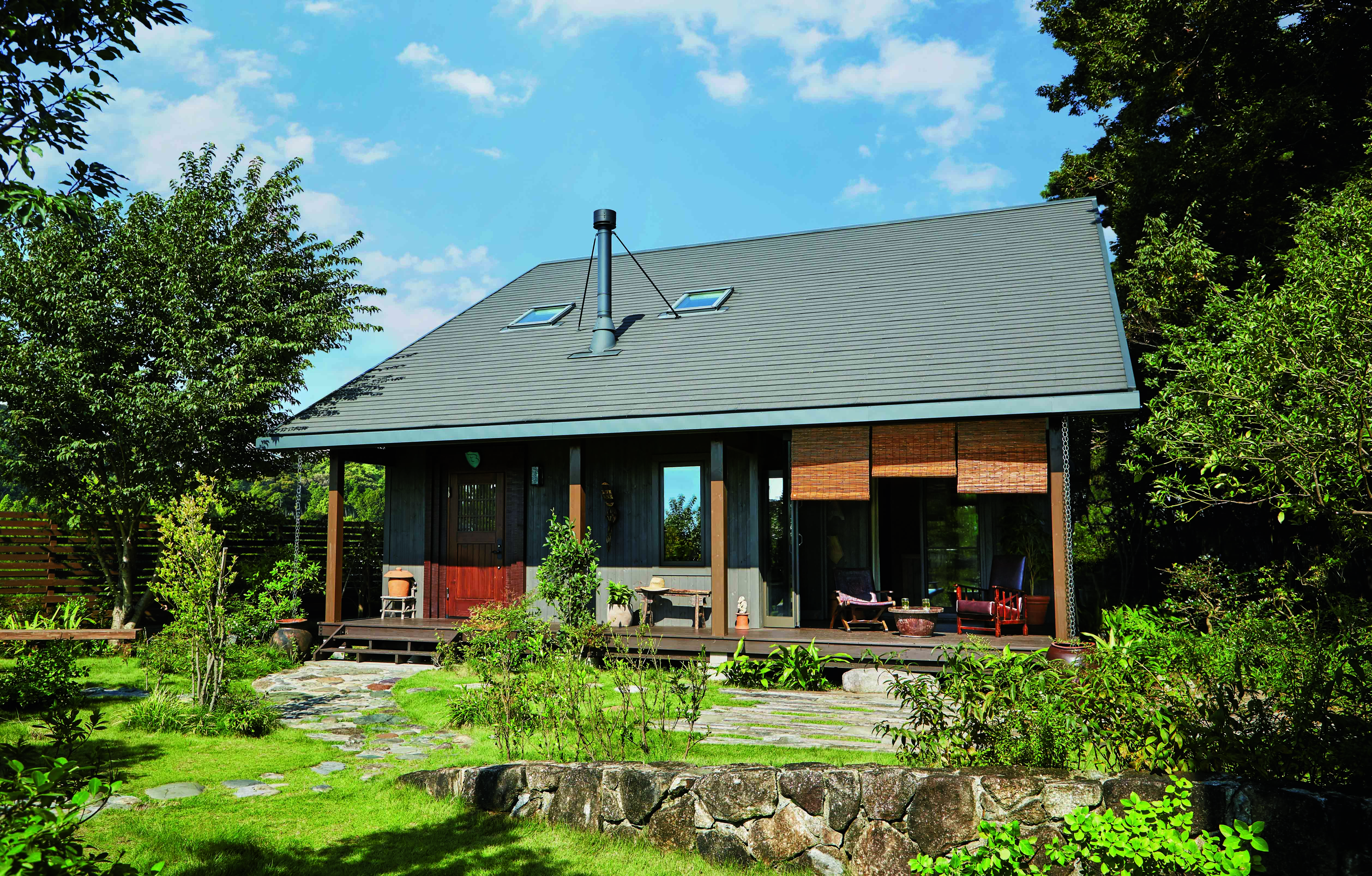直火でこんがり美味しいアウトドアおやつを作ったら、ウッドデッキで実食!外とつながるおおらかな暮らしを体感しよう。