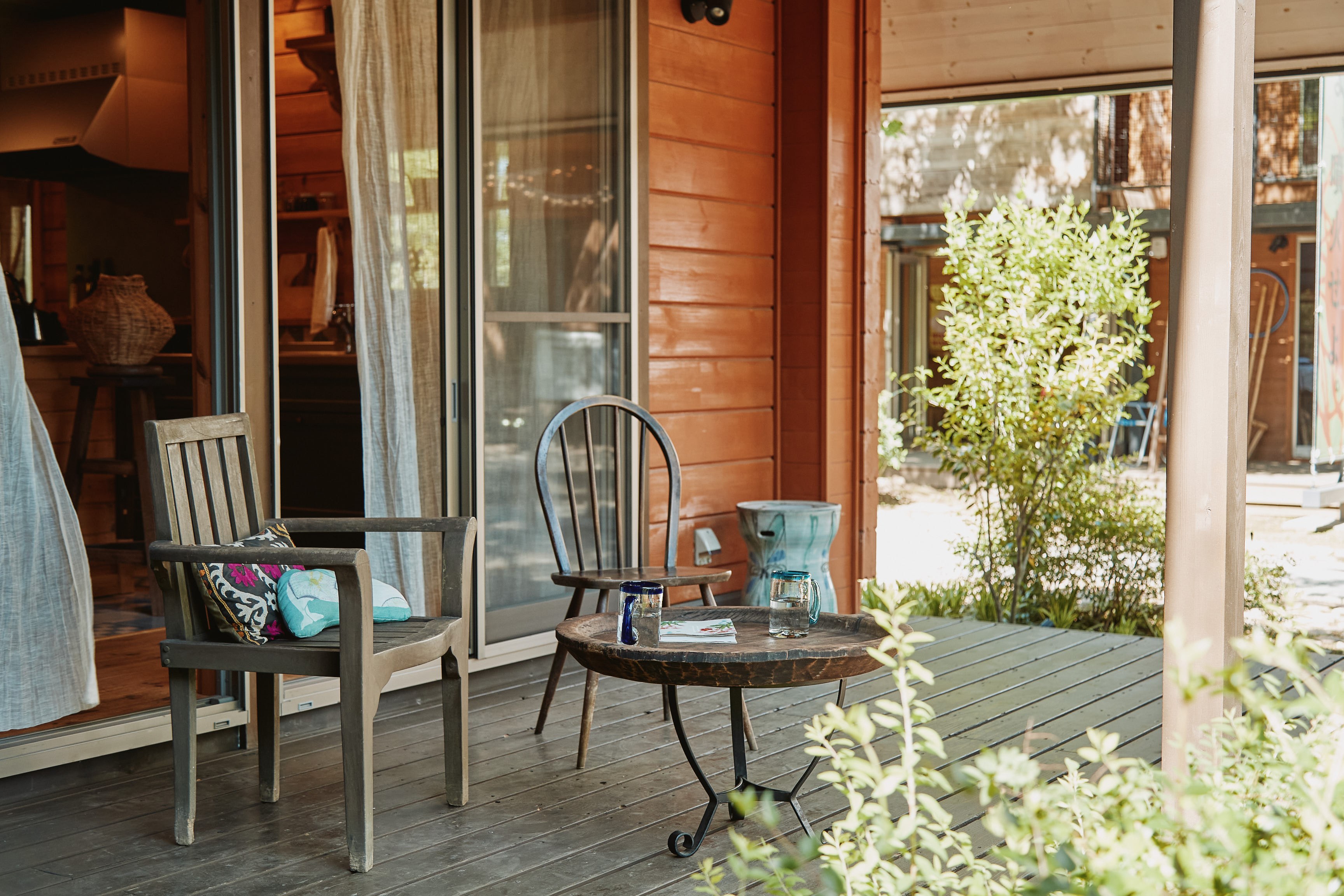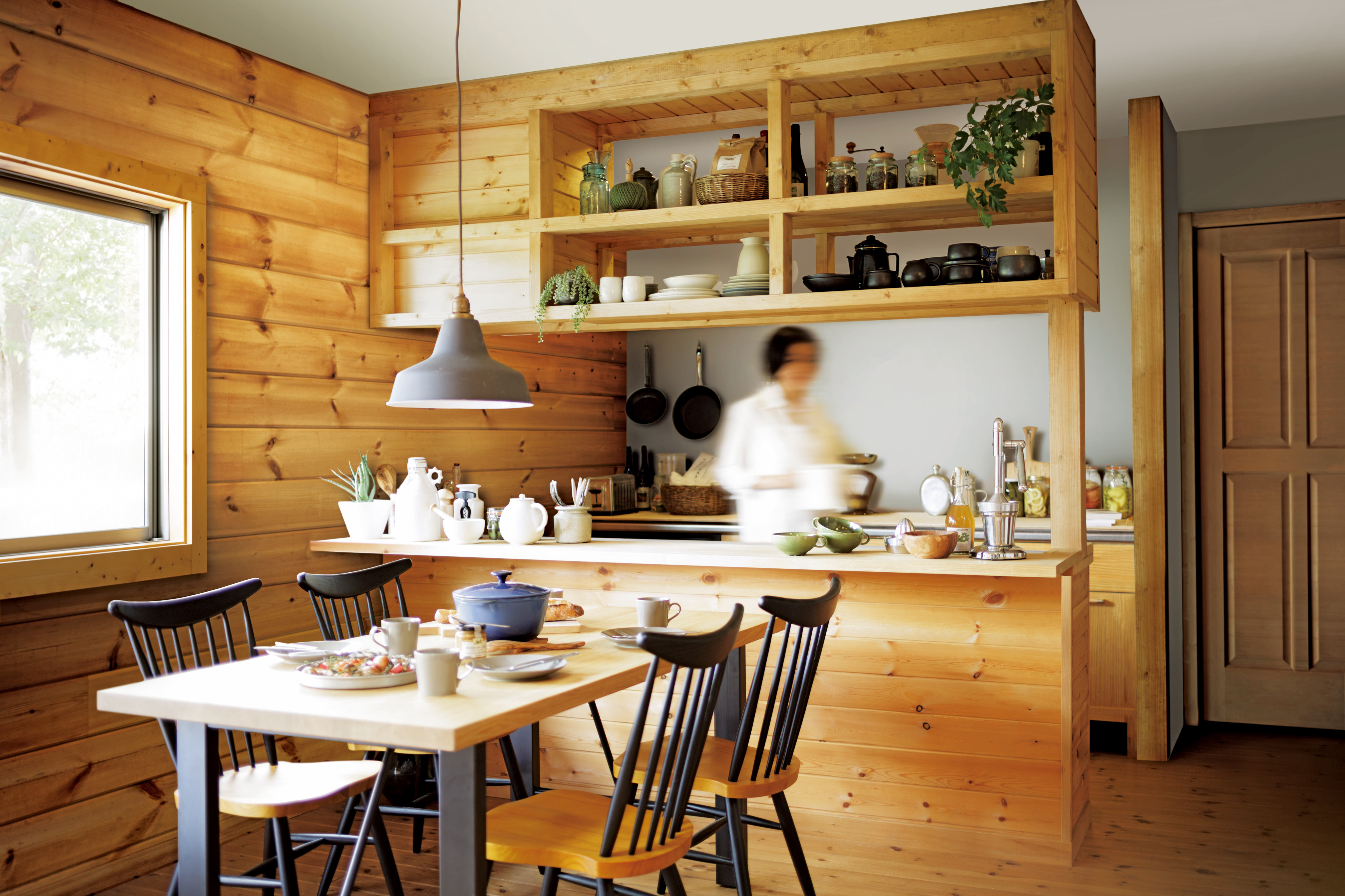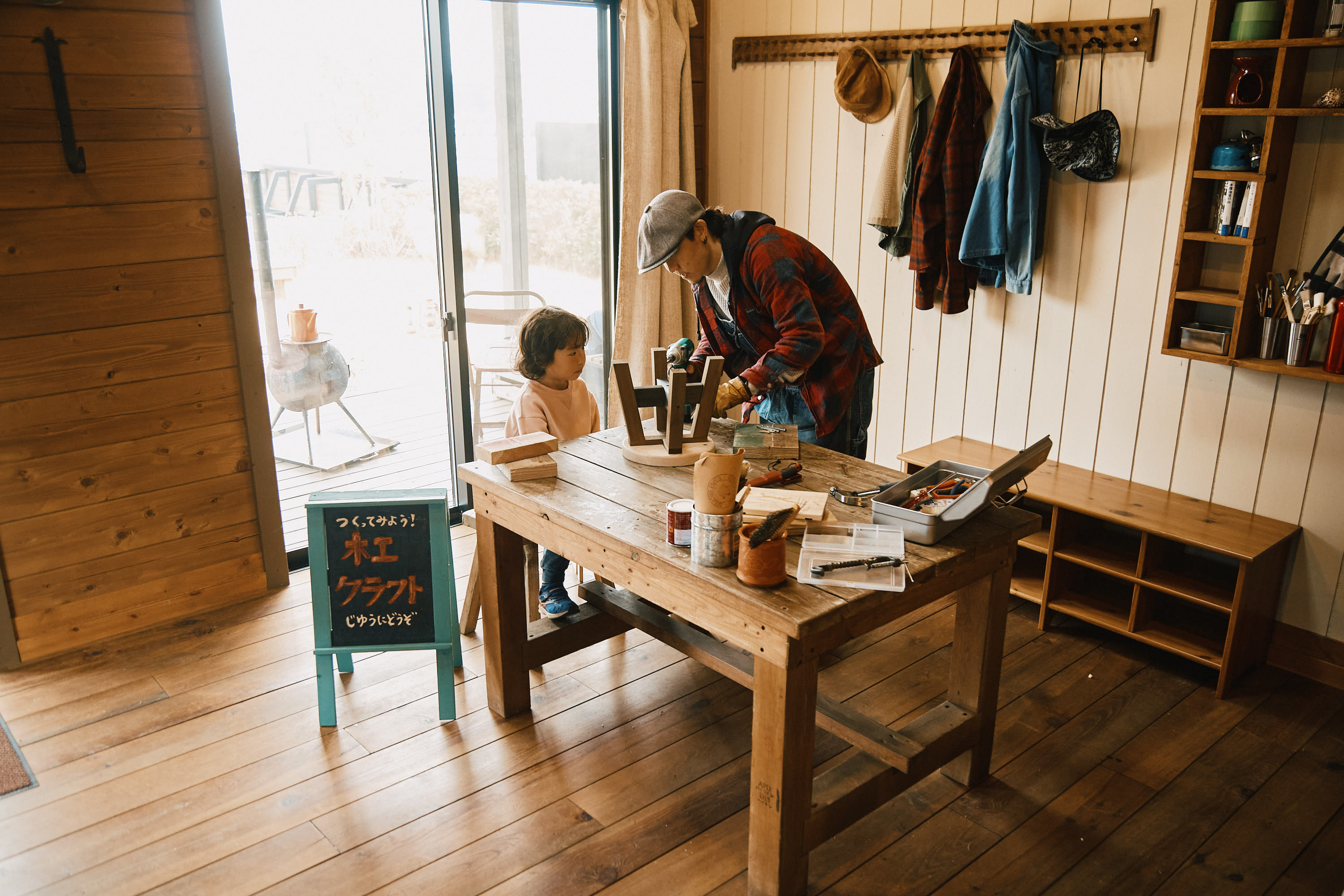土間やウッドデッキで春風にあたりながら作業したり、室内でゆったり木のぬくもりを感じたり。