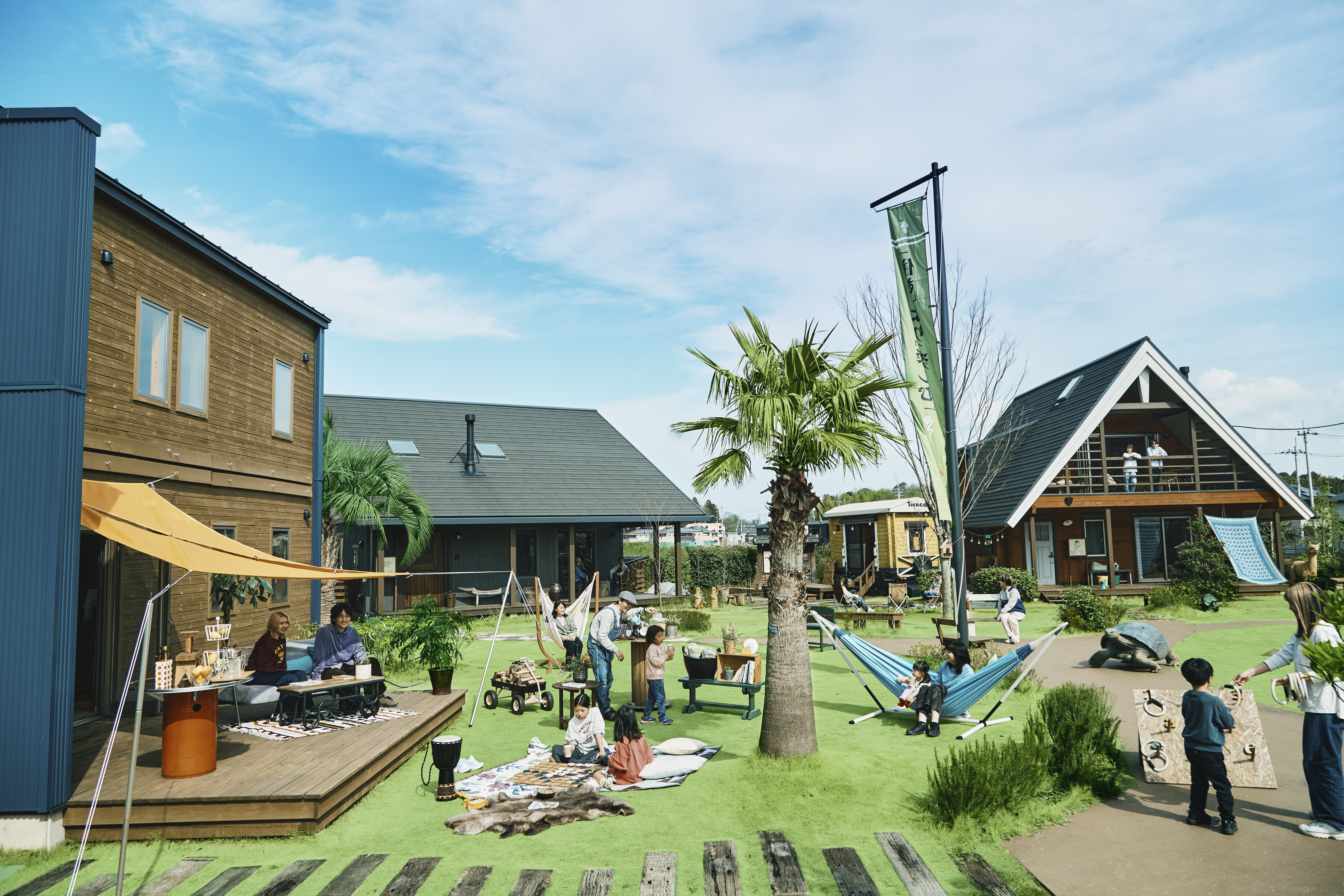 ログハウスをはじめとした個性的な木の家が立ち並び、