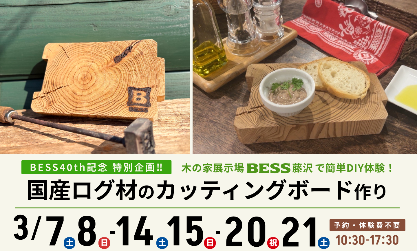 “家になる木”に触れる、ちょっと特別なひとときをご用意しました。ログハウスづくりから生まれた丸太を活かして、さあ春のDIYを楽しもう。