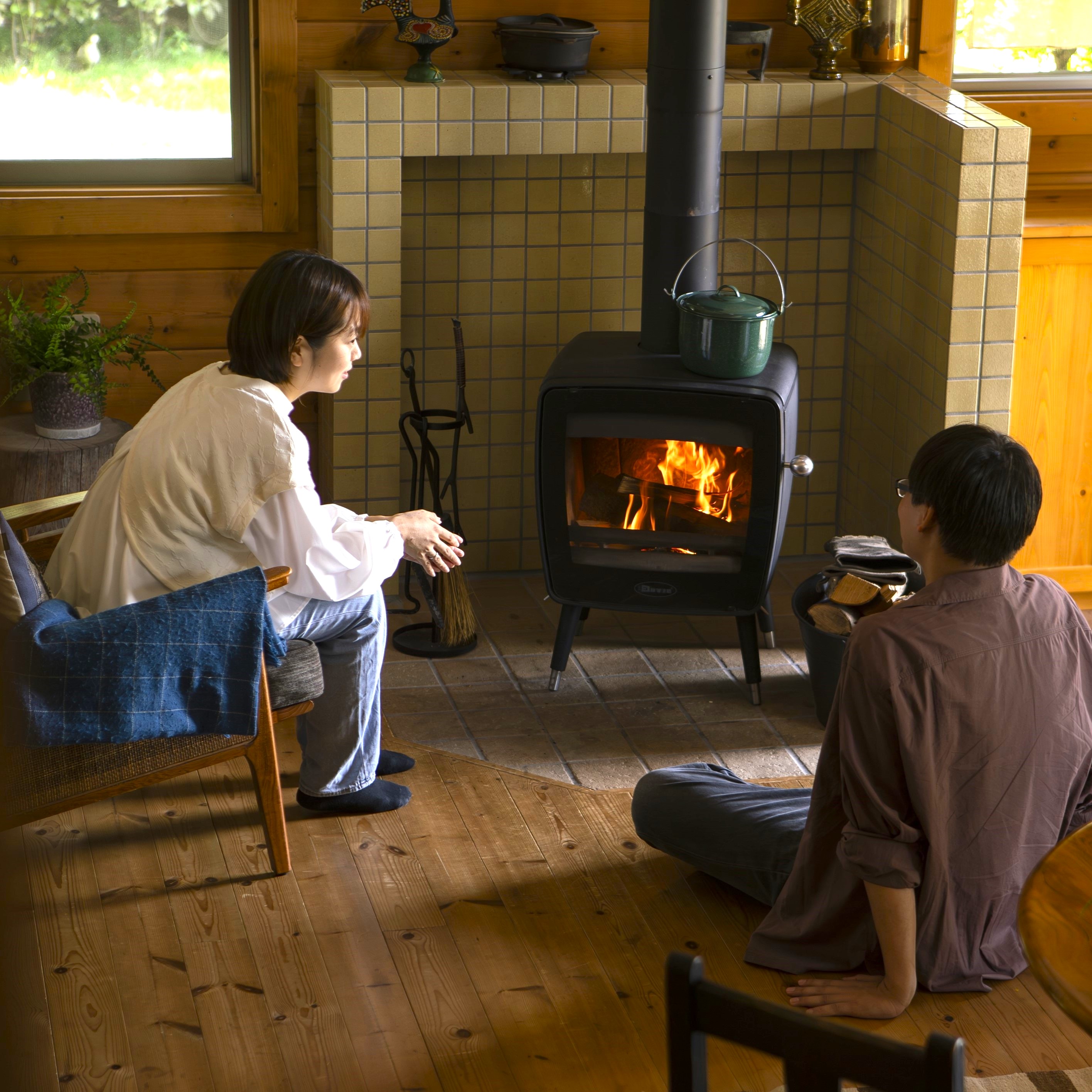 薪ストーブに癒されること間違いなし。