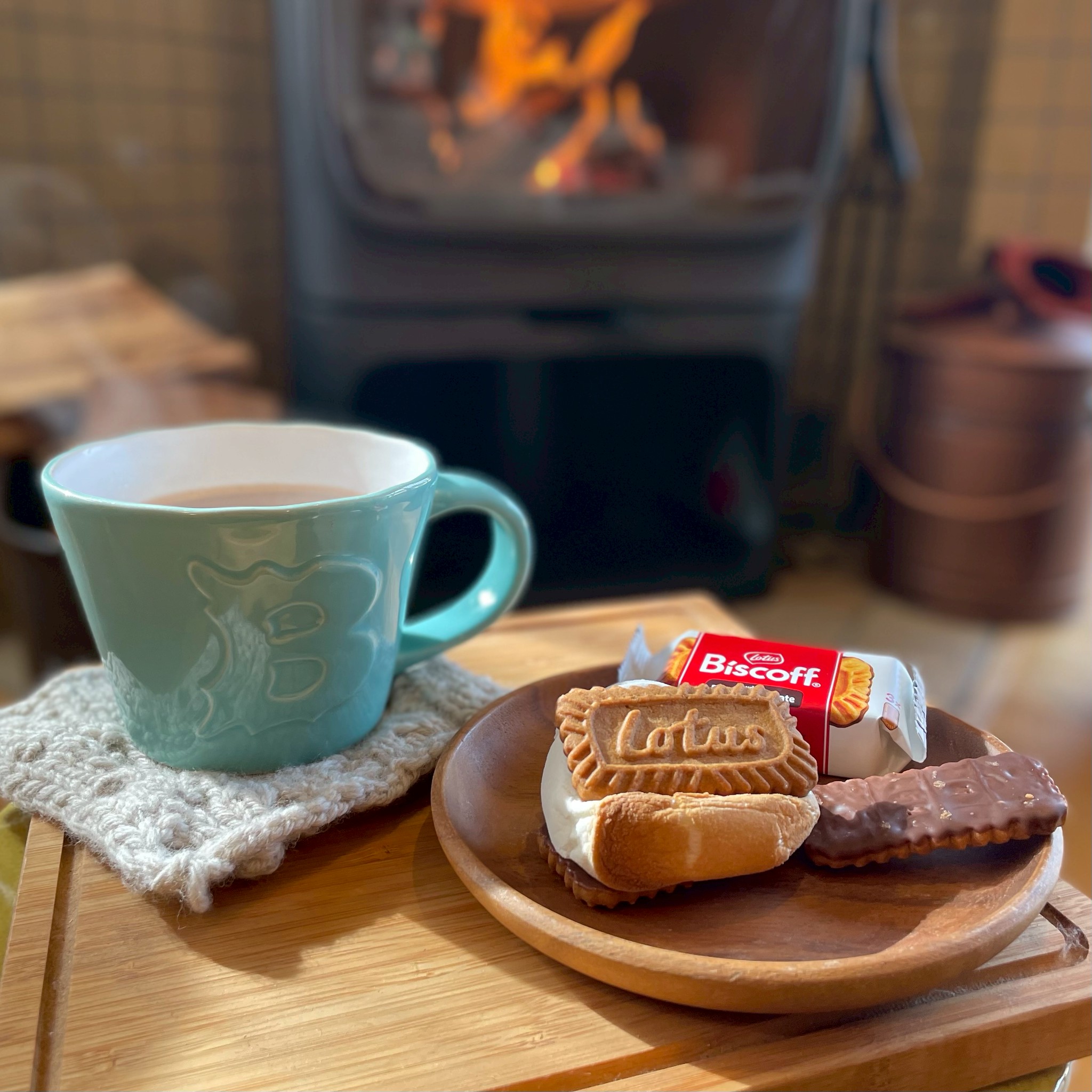 薪ストーブの天板で温めたお湯で淹れた珈琲やお茶を片手に、炎を眺めながら温ませんか?