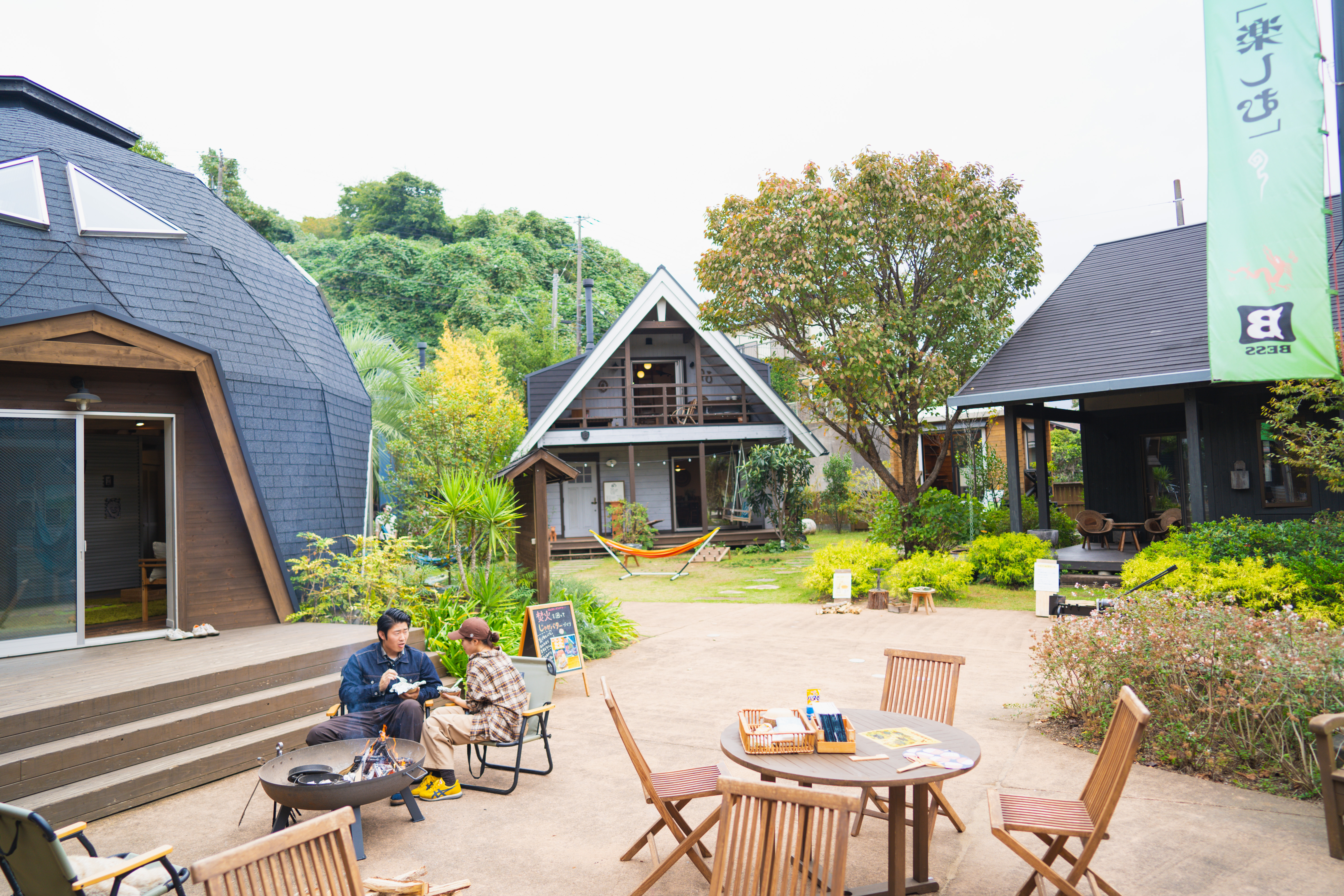 ログハウスをはじめとした個性的な木の家が立ち並び、