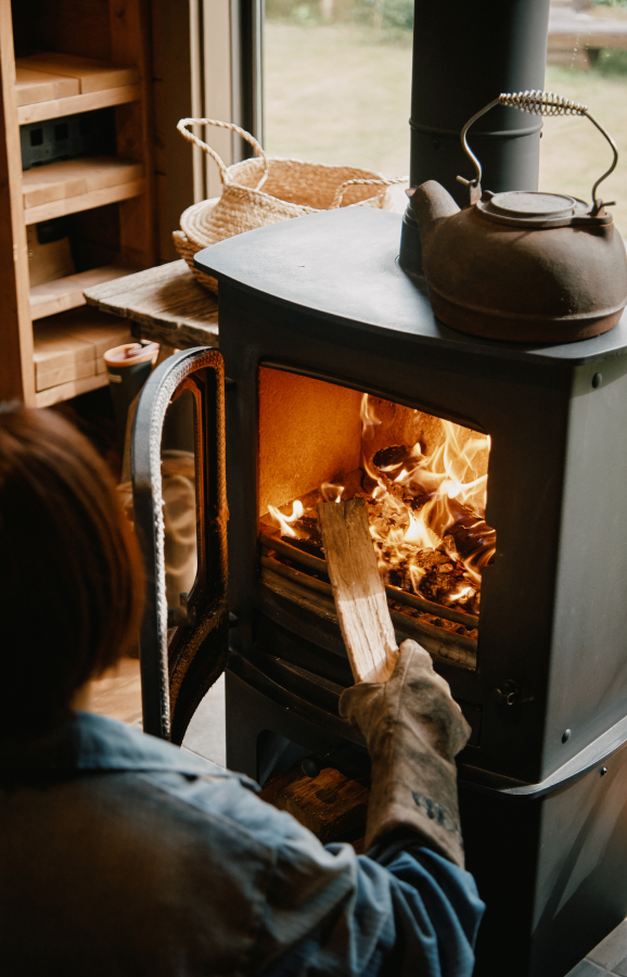 薪をくべながら火を大きく育てていきます。炎が大きくなるにつれて部屋もじんわり暖かくなっていきます。