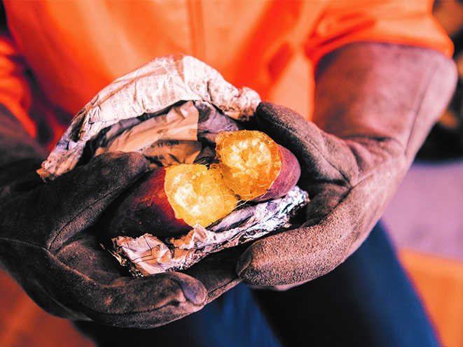 薪ストーブでじっくり火を入れたホクホクの焼き芋の美味しさは格別…!