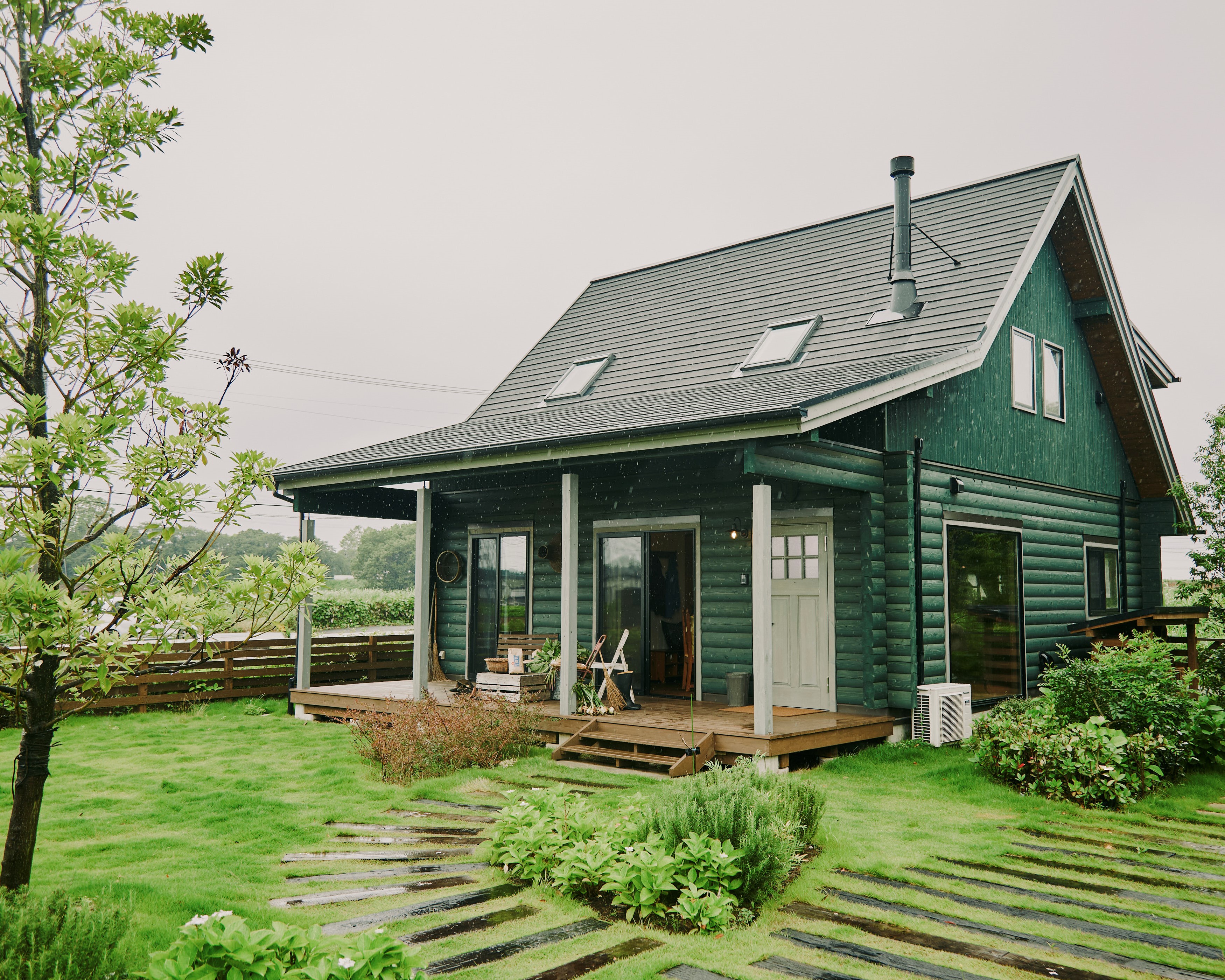 ログハウスをはじめとした個性的な木の家が立ち並び、