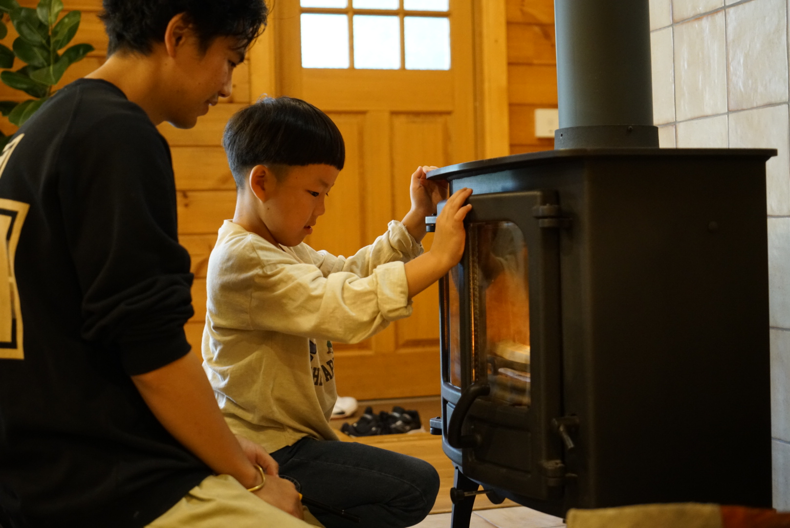 薪ストーブなど、効率だけを重視するより、家族がおおらかに暮らせる家づくりをしています。